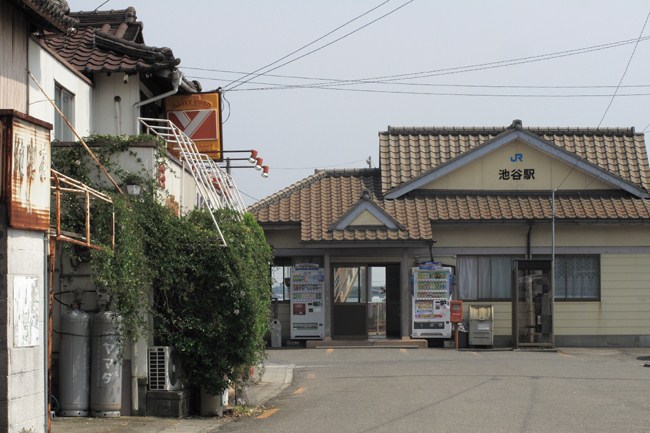 一本道が延びる寂しい駅前で、初夏の午後。次の列車まで1時間‥。