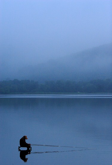 天気は予報通り曇りでも、霧と鏡のような静かな湖面 に、釣り人ひとり。朝の匂いはいいですね。さて、どんな1日になるのだろうと期待が高まる朝です。