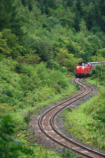 線路の曲線美が日本一(と私は思う)の146kpです。少しづつ音が大きくなり、ゆっくりと力強くDD51貨物が峠を登ってきました。何度撮ってもワクワクする瞬間です。