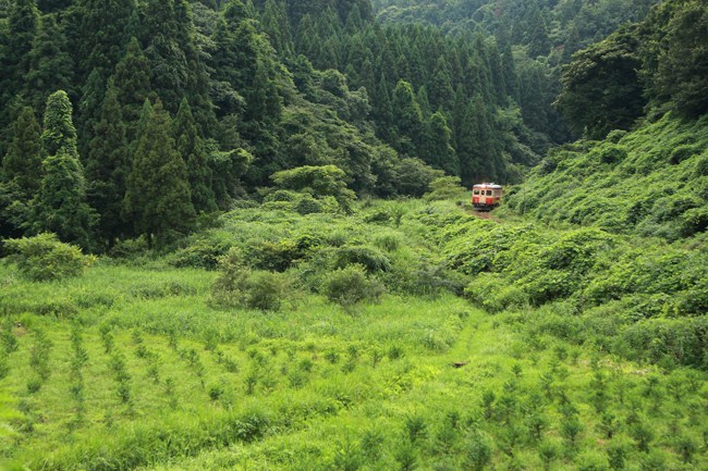 夏の緑一色の大野の森。国鉄色が最も似合う背景かも知れません。