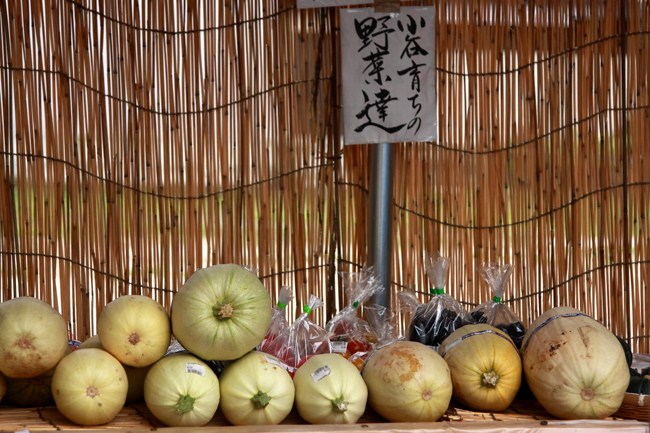 お昼は南小谷で蕎麦定食(旨い!)。お店の前では、採れたて野菜も販売中。