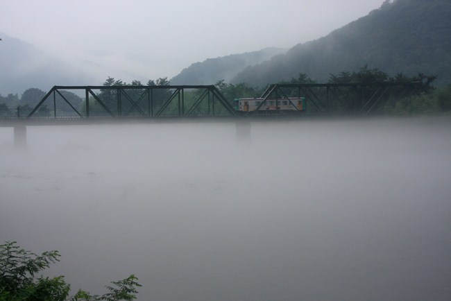 小雨の朝。訪ねてみれば、ドライアイスのような川霧で溢れる根尾川。