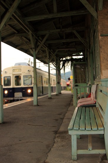 上り列車が到着。ツーデーパスは上田電鉄も乗車できます。