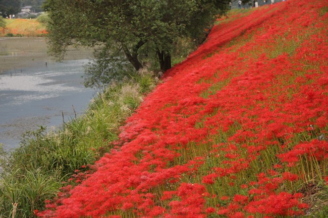 関東の巾着田は素晴らしいですが、9月の岐阜県の川堤はこんな感じのところが日常です。