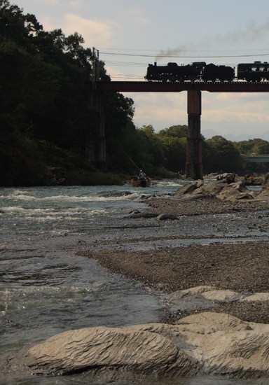 波久礼で次の上り電車に乗ると、長瀞で汽車を追い抜いたので、ダメ元で上長瀞で下車すると、余裕で親鼻鉄橋通過に間に合いました(乗り鉄追っかけ?!)。