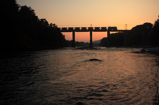 雲一つない夕暮れ。秋らしい空のグラデーション。貨物の整然としたシルエット。狙い通りの1枚になりました。
