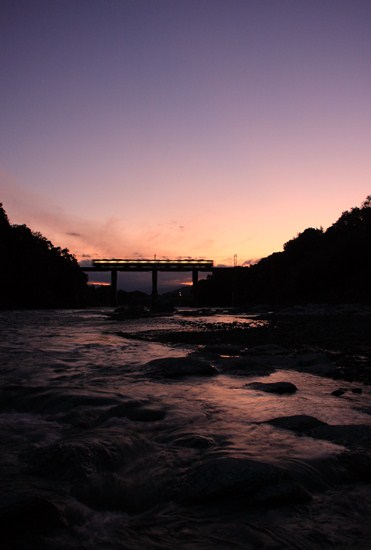 残照が残っている時間帯に、列車が通過してくれました。17:30分過ぎ。秋は夕暮れですね。