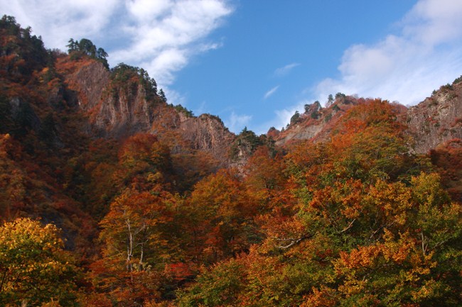 待望の青空。待ってましたこの色。やぱり紅葉は晴れてこそですね。田子倉ダムはまさに紅葉ピークでした。