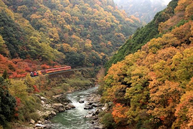 前夜の雨で朝は霧の渓谷。ようやく晴れましたが、まだ日が差しません。