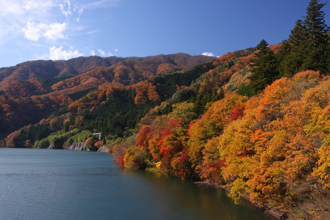 道路橋の反対側は、素晴らしい色づき。どうせならこちら側に鉄橋があったらなぁと。