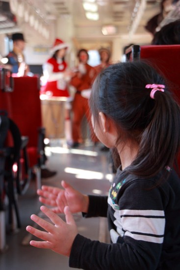 わ鉄の「クリトレ」。車内ではクリスマスソングの生演奏に、乗客全員にクリスマスプレゼント♪