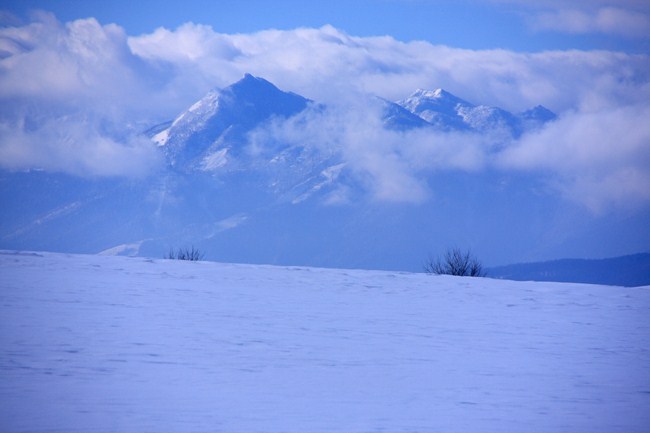 90度パンすると富良野岳。俄然やる気が出てきました。