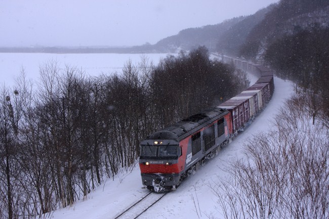 雪降る小沼定番ポイント。夏も冬も駒ケ岳は雲の中。4092レ、DFでした。でも久々の幹線筋、新鮮です。