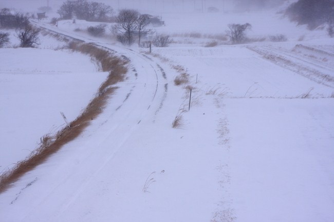 雪で線路が見えなくなりました。雪煙あげて列車が通過してほしいなぁ(数時間、通過予定無し)。