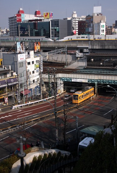 飛鳥山より。新幹線、都電、京浜東北線、高崎線、貨物列車に、アスカルゴ(手前に見える昇降機)。鉄道好きには楽しい場所でした。