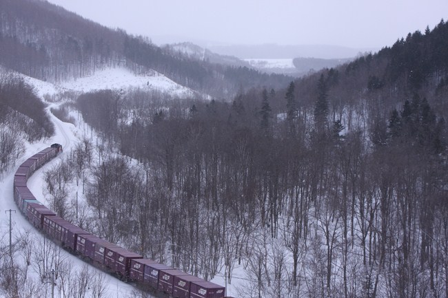 ゆっくりと峠を下る、8075レ貨物。初日からいろんなシーンが撮れました。
