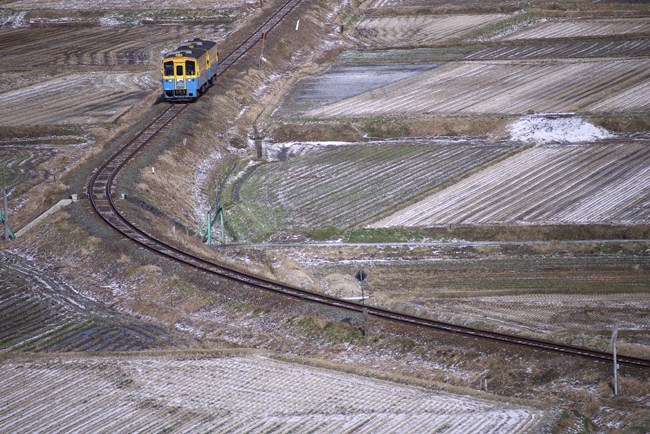 いつもの野球場(中段)から。雪だか霜だか白いものが残る景色も早朝ならではのシーンです。