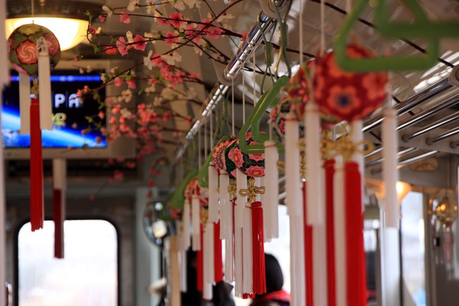 この季節は、ひな祭り装飾の列車が毎日一往復します。