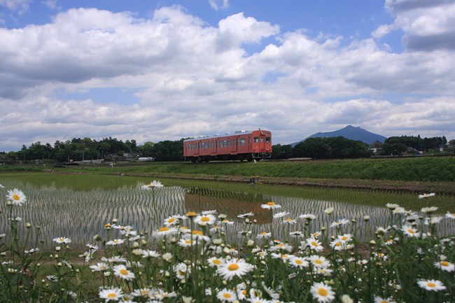 沿線中、筑波山に一番近い辺り。ちょっと雲が多めでしたが、田園が広がって、素敵な場所でした。