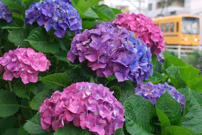 先月チェックした紫陽花の株は、皆イマイチ。ようやく見つけた色づきの良い株です。