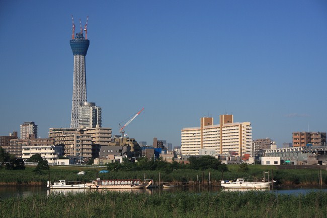下町の庶民的な雰囲気の対岸光景のなか、スカイツリーの存在感は圧倒的なものがあります。