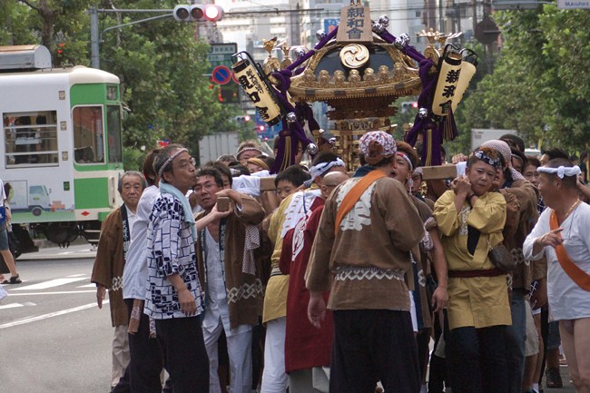 向原駅方面で祭囃子が聞こえるので急いで行ってみると、ちょうど春日通りに神輿が。7500形をちょこっと入れて撮れました。なんで、「電車が写っている必要があるのか。」それは多分撮りたいものは、「神輿と電車」ではなく「電車と神輿」なのでしょうね。