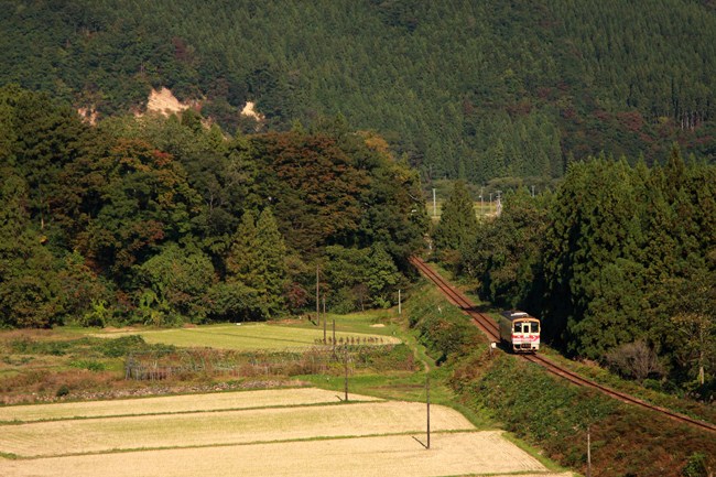 雪解けの早春に撮った場所で。バックの森が色づき始めていました。