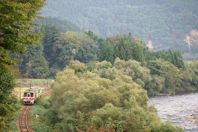 終点矢島まであと少し。子吉川河畔も晩秋色です。