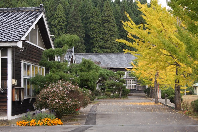 約4年前に廃校となった小学校。当時のままの姿で保存されています。銀杏がいい色合いです。