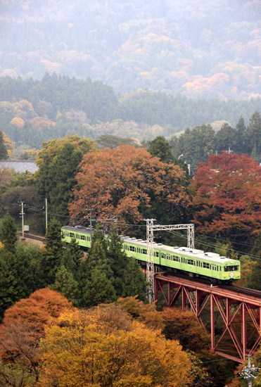 迷わず下車した浦山口駅。曇天に、しっとり色づいた森も悪くはないですね。