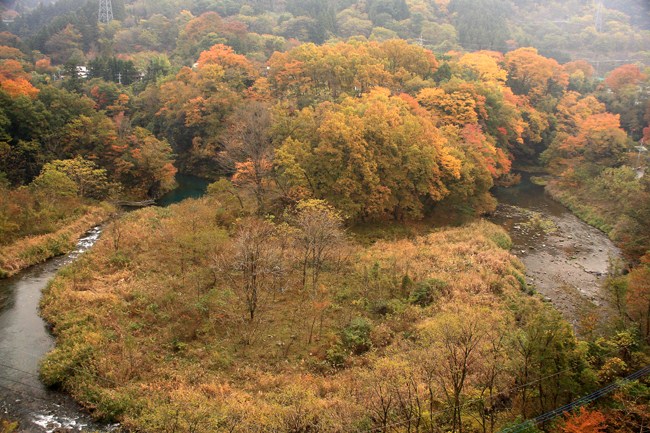 浦山ダム近辺の渓谷は、蛇行する荒川支流を囲むように広葉樹の森、絶景です。