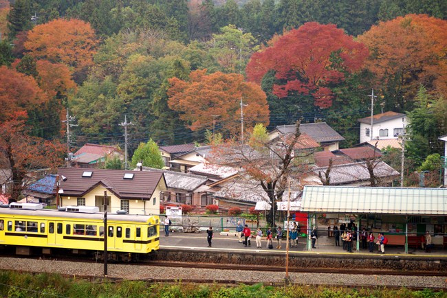 登山客、蒸気撮影者で賑わう、晩秋の浦山口駅です。