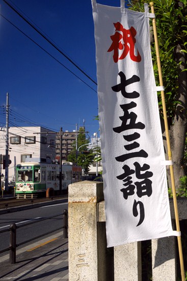 七五三で賑わう八幡神社。ここの銀杏は色づきが早そうな感じでしたが。