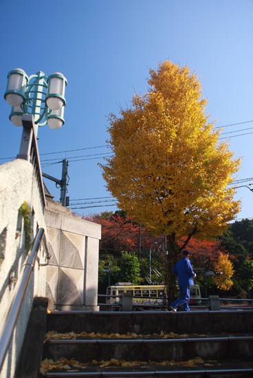 音無橋の袂に、ひときわ鮮やかで、シンボリックな銀杏の木がありました。