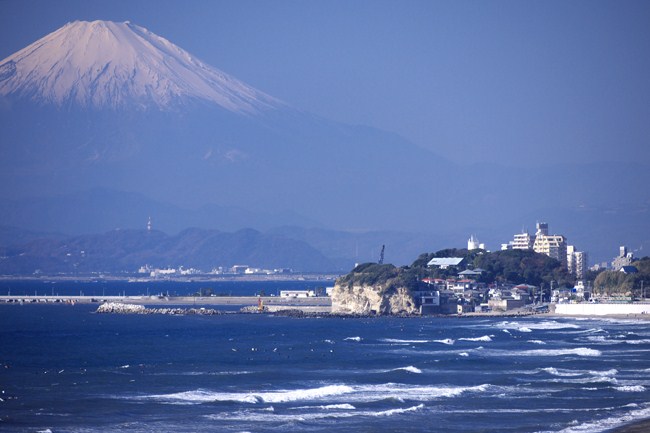 稲村ヶ崎公園からの、富嶽&江ノ電。ほとんど見えませんね。
