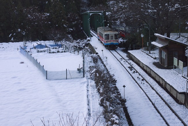 樽見鉄道も終点樽見に近づくにつれ白が目立ってきました。ここは春は桜の駅です。