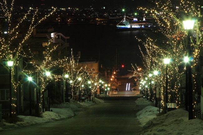 函館に戻ったのが20時過ぎ。せっかくなのでと、港が見える坂の上から、市電と連絡船。