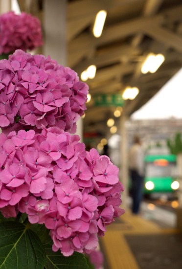 沿線唯一の木造駅舎の夕暮れ。