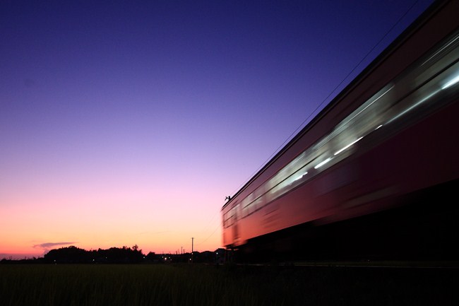 約5分後の19時20分頃、今度は上り列車が通過しました。5分間で空の色が微妙に変化しました。