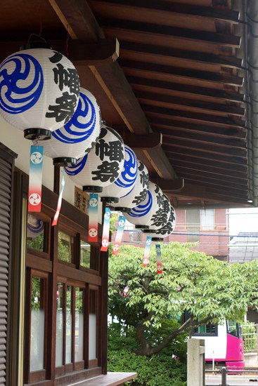 曇ってきました、荒川線。八幡神社の夏祭り近し!