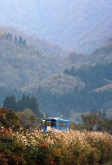 日没後の山里。冷えてきました。早々と宿(乳頭温泉、大釜温泉)へ向かいました。