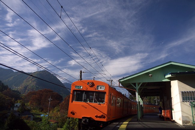 青空の下、塗装変更直後でピカピカです。恒例の旅は徹底して恒例。いつもの浦山口で下車。