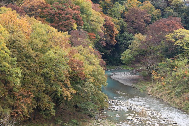 橋立川の渓谷の紅葉。例年より淡いですが、美しい場所です。