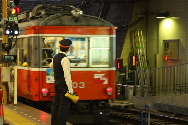 トップシーズンの箱根。帰りの登山電車は満員・すし詰め。 「せっかくいらっしゃったのに、昨日は大雨、帰りはいつもの通勤電車のようで申し訳ございません。しかし、これも旅の思い出としてください。そして是非また箱根にお越しください。」そんな車掌さんの車内アナウンスに、乗客から自然に笑いと拍手がおこりました。
