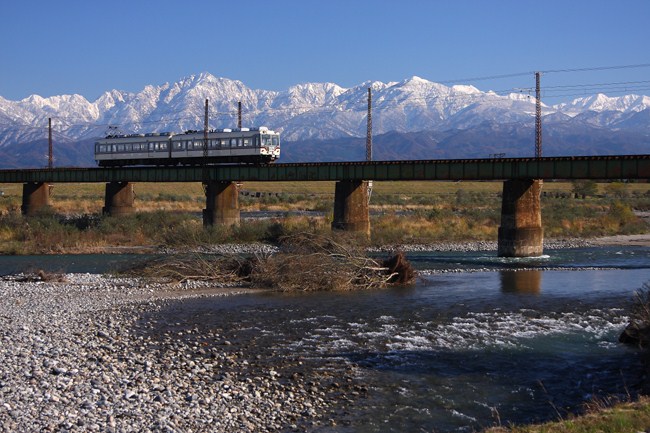 「山が見えているうちに。」と、地鉄&立山ベストポイントの常願寺川の鉄橋あたりへ。
