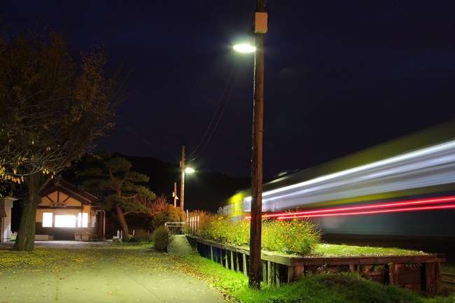 夜の帳が下りる頃、晩秋由利鉄フィナーレは、やはりこの駅で。