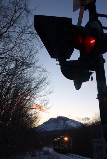 散歩道さんご推奨の、「硫黄山(アトサヌプリ)」バックのポイントにて。 午後3時台でもう日没です。空は少し焼けました。