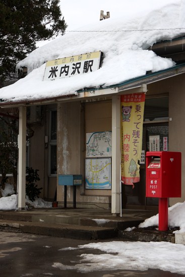 国鉄時代、昭和の雰囲気が残る上米内の駅舎。