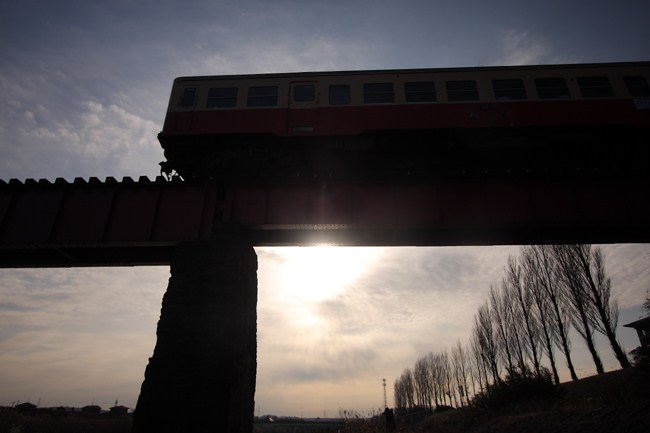 ポプラと鉄橋。冬場の撮影、2つ目の場所です。
