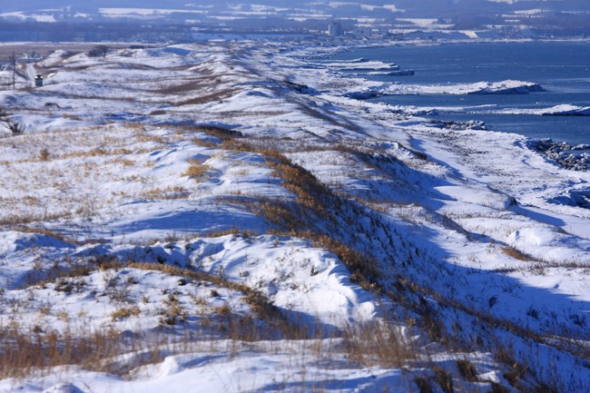 雪原の彼方に見える線路と40系。冬の釧網本線海線らしい光景です。